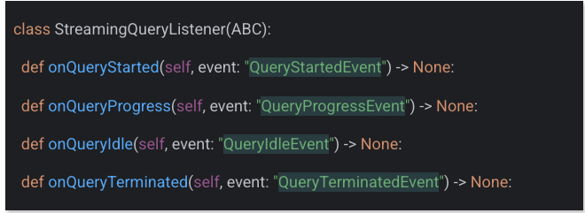 To put it short, you create a class implementing the StreamingQueryListener to intercept four different query states: