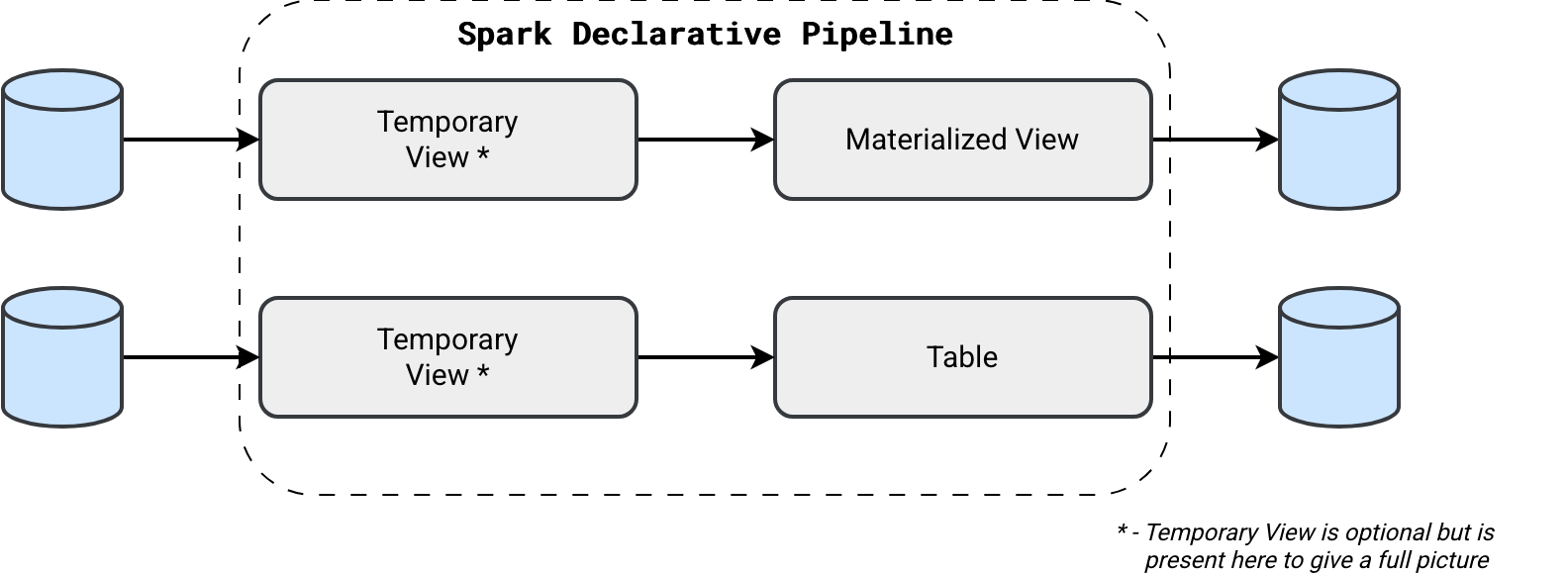 Even though SDP supports SQL as the declaration API, I'm going to stick with Python for the sake of simplicity.