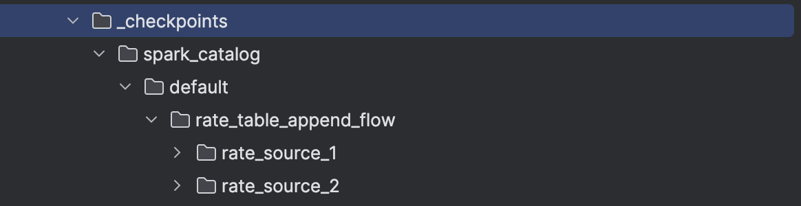 Consequently, whenever you start a new SDP flow, it will either create or use the existing checkpoint location defined as ${storage}/_checkpoints/${table}/${flow name}. For example, the following code: