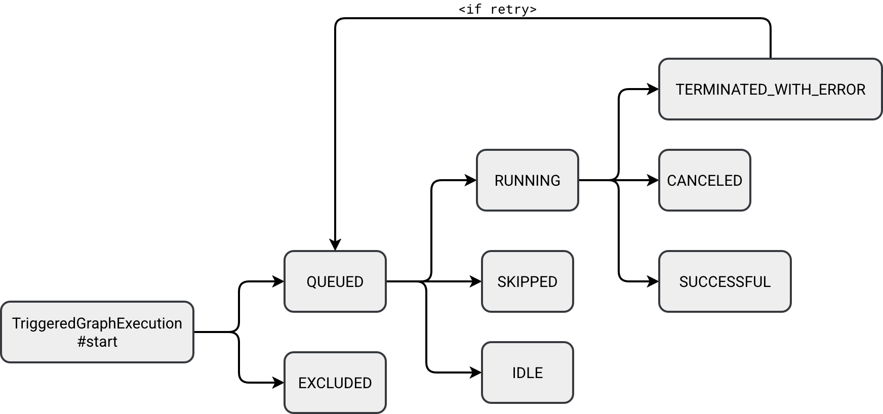 - SKIPPED: in case of a DAG with many children nodes, children nodes can be marked as skipped if their upstream dependency fails. Unlike the EXCLUDED state, it's active on runtime only.