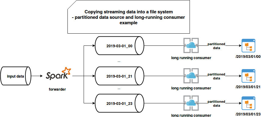 The problem of moving the records from a streaming broker to file system static sink can be reformulated as a problem of transforming data in motion into data at rest. At first glance, this transformation seems easy because we can simply read the data in micro-batches and write them to some directory. It would be fine for all use cases which don't involve event-time partitioned data. But it's not the case because the partitioned data has the advantage of reducing the volume of data to read, especially in time-series oriented computations.