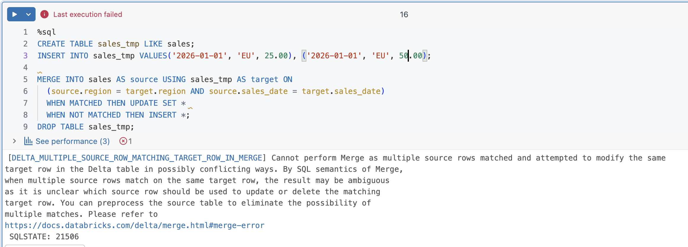 After the execution, you will see only one record for '2026-01-01' and 'EU':
