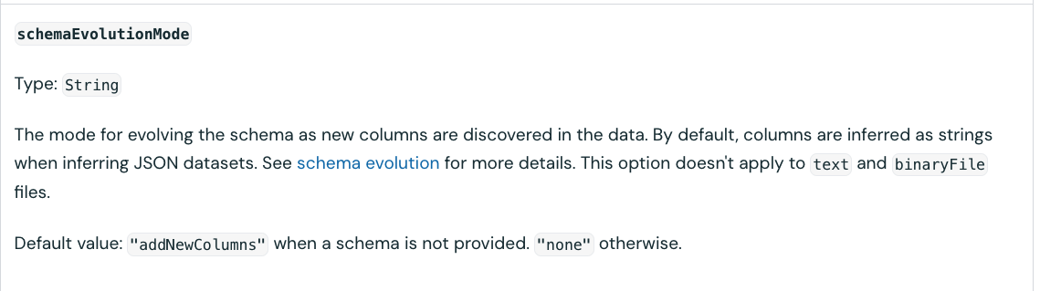 Although the query looks simple, you might be asking yourself, what is the purpose of this schemaEvolutionMode => "none" parameter? To answer this question, we need to return to the read_files function: