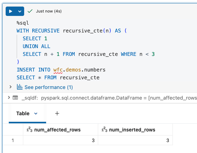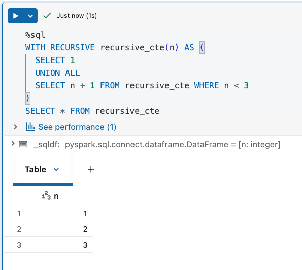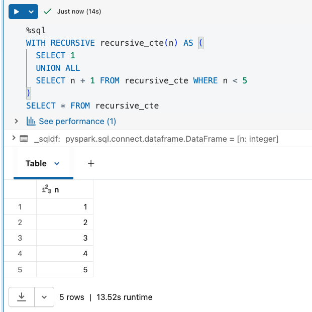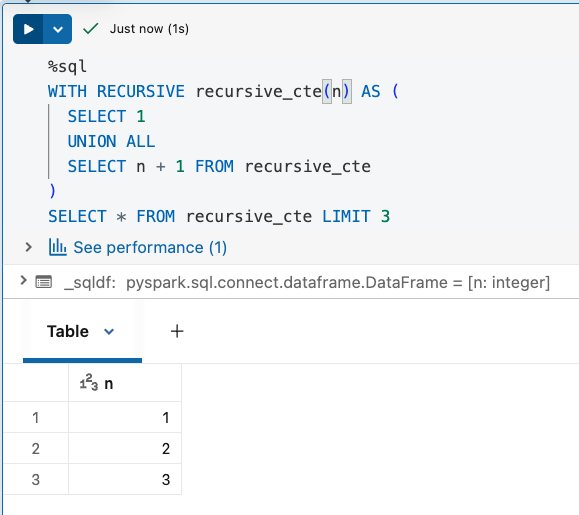 Databricks supports recursive CTEs from DBSQL 2025.20 and Databricks Runtime 17.0. To use them, simply start your CTE with the WITH RECURSIVE prefix and put both anchor and recursive member queries inside. Once you declare the recursive query, you can use it next in the SELECT... statement.