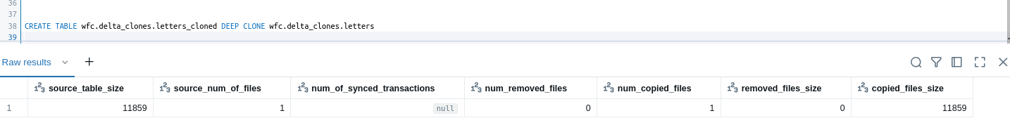 CREATE TABLE wfc.delta_clones.letters_cloned DEEP CLONE wfc.delta_clones.letters